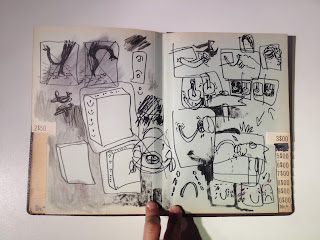 After three month of searching, drawing, painting, photographing, writing, reading, performing, recording, and thinking, I got trap in the strange dead end. I got a feeling of arriving to a place whitout knowing or remebering anything from the trip of getting there.
